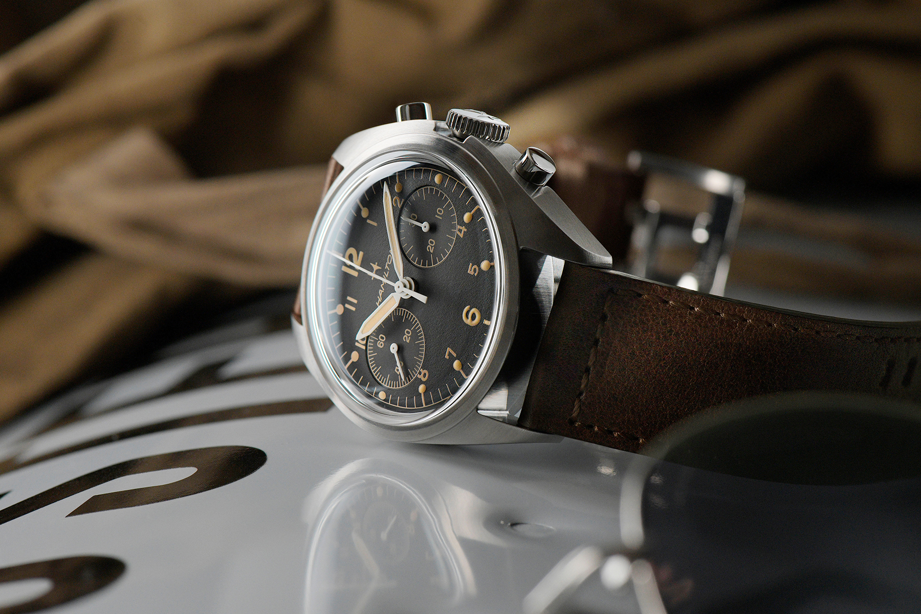 Report Ein Statement für das Handgelenk von Luftfahrtexperten Mit seinem markanten militärischen Fliegerdesign in Vintage-Optik bringt der Khaki Pilot Pioneer Mechanical Chronograph von Hamilton…
