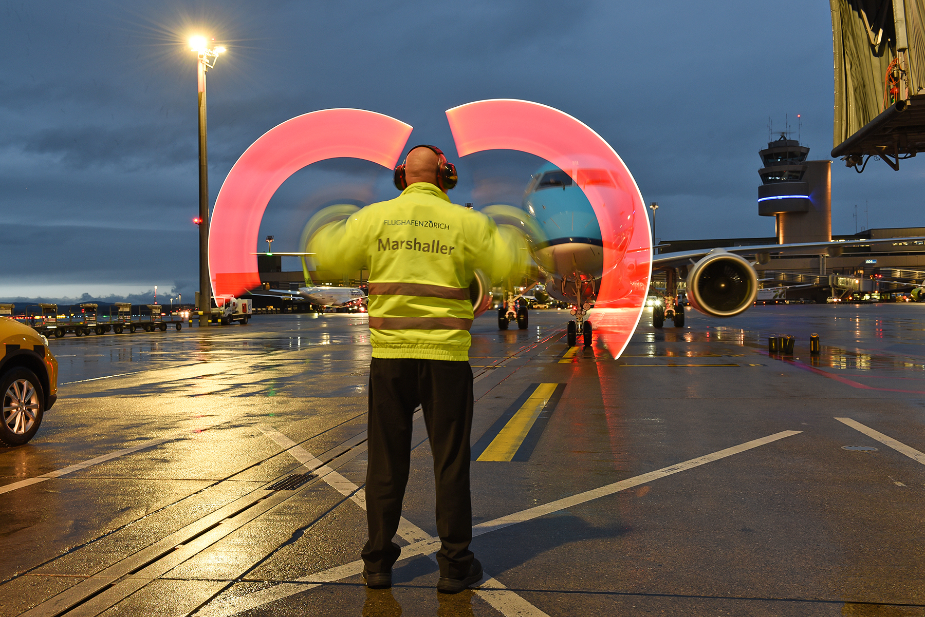 Report Über Vorfeld und Rollweg mit dem Marshaller Während des World Economic Forums (WEF) in Davos herrscht am Flughafen Zürich ein reges Kommen und Gehen von Regierungsflugzeugen und…